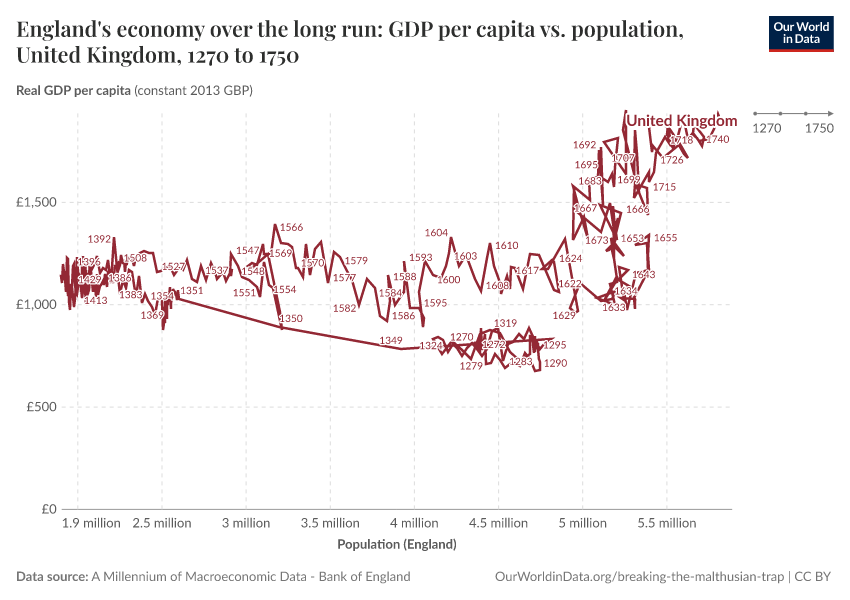 Max Roser (2020) - “Breaking out of the Malthusian trap: How pandemics allow us to understand why our ancestors were stuck in poverty” Published online at OurWorldinData.org. Retrieved from: 'https://data-populationgrowth-discre.owid.pages.dev:8789/20251125-173858/breaking-the-malthusian-trap.html' [Online Resource] (archived on November 25, 2025).BibTeX citation