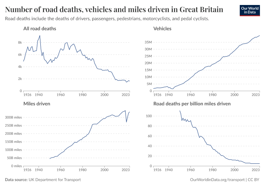 Hannah Ritchie (2025) - “How Britain built some of the world’s safest roads” Published online at OurWorldinData.org. Retrieved from: 'https://data-populationgrowth-discre.owid.pages.dev:8789/20260211-174736/britain-safest-roads-history.html' [Online Resource] (archived on February 11, 2026).BibTeX citation