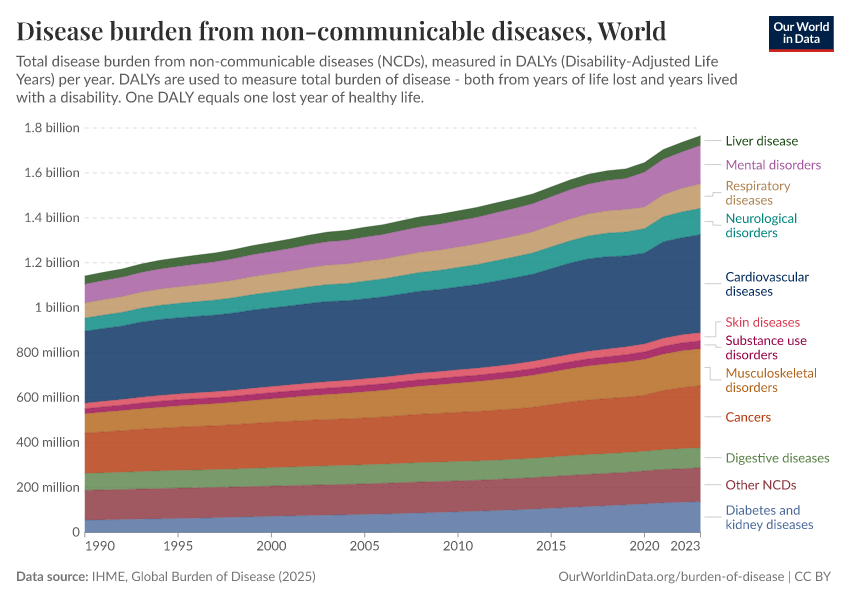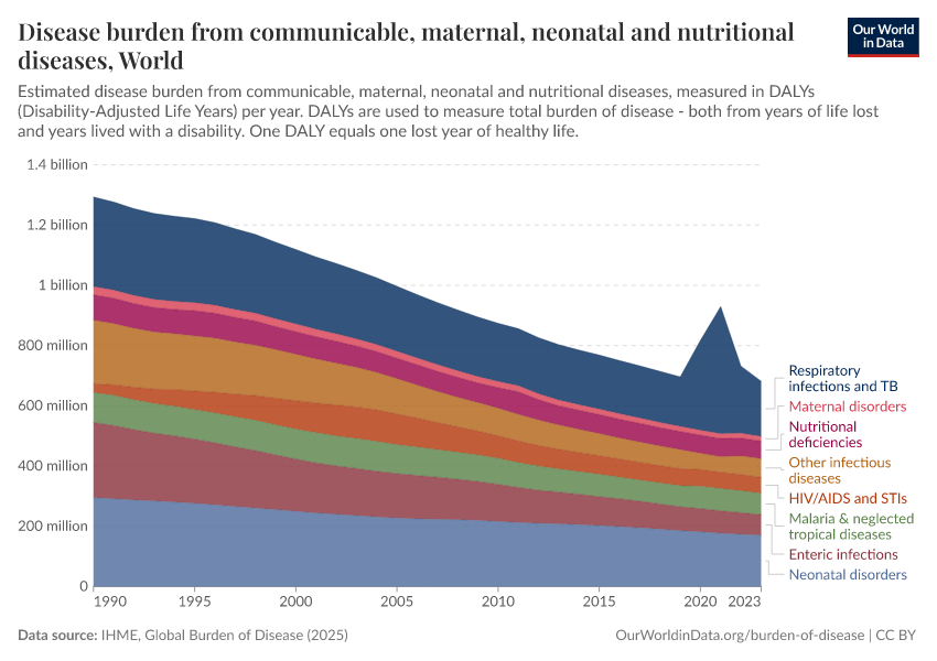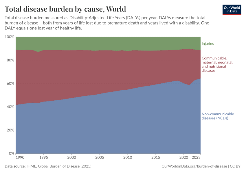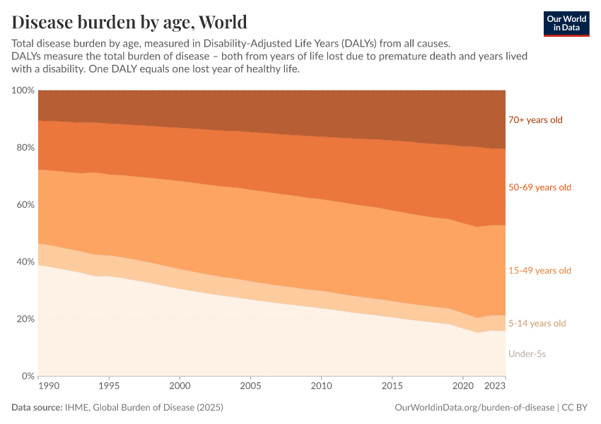 Max Roser, Hannah Ritchie, and Fiona Spooner (2021) - “Burden of Disease” Published online at OurWorldinData.org. Retrieved from: 'https://data-populationgrowth-discre.owid.pages.dev/burden-of-disease' [Online Resource]BibTeX citation