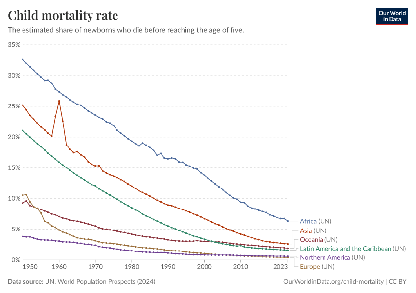 Hannah Ritchie (2018) - “How child mortality has declined in the last two centuries” Published online at OurWorldinData.org. Retrieved from: 'https://data-populationgrowth-discre.owid.pages.dev:8789/20260225-004721/child-mortality-global-overview.html' [Online Resource] (archived on February 25, 2026).BibTeX citation
