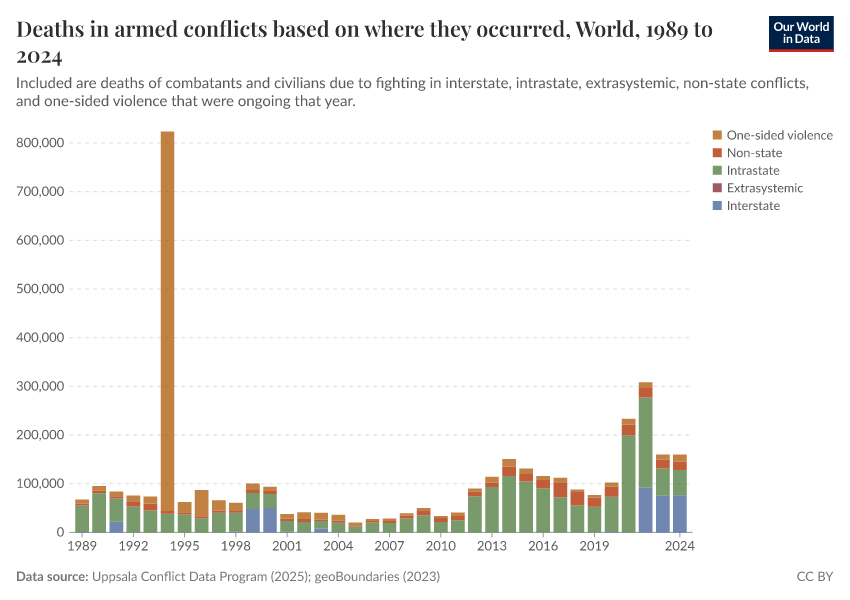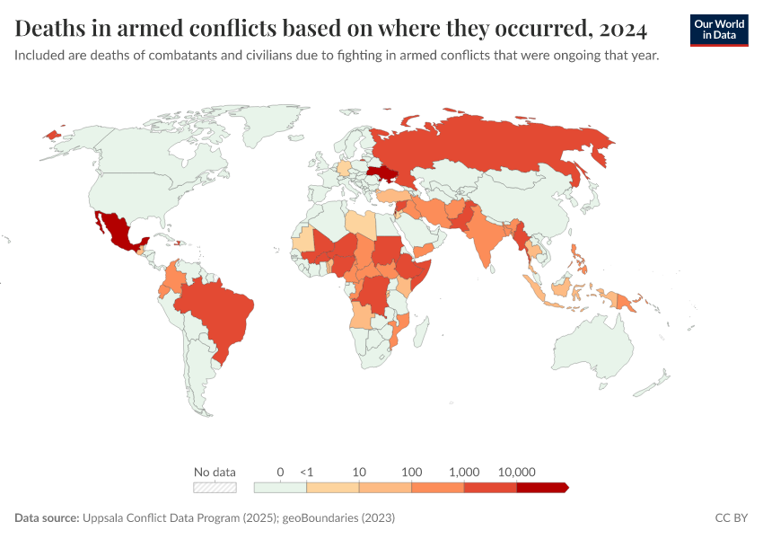 Explore conflict deaths and death rates across the world's countries.
