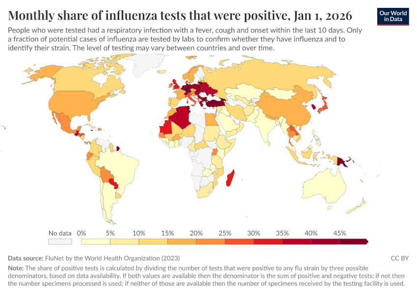 Explore global data produced by the World Health Organization on influenza symptoms and cases.