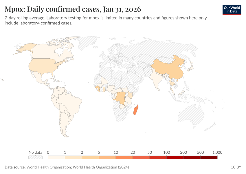 Explore the data produced by the World Health Organization and Africa CDC on mpox (monkeypox).