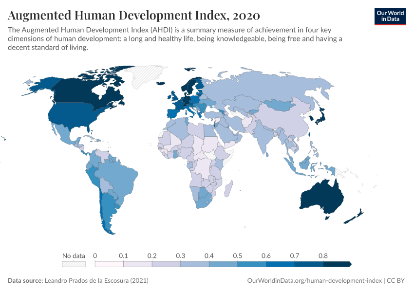 Leandro Prados de la Escosura (2021) – with minor processing by Our World in Data. “Augmented Human Development Index” [dataset]. Leandro Prados de la Escosura, “Augmented Human Development Index (AHDI) - Country data”; Leandro Prados de la Escosura, “Augmented Human Development Index (AHDI) - Regional data” [original data]. Retrieved February 27, 2026 from https://data-populationgrowth-discre.owid.pages.dev:8789/20260105-133053/grapher/augmented-human-development-index.html (archived on January 5, 2026).