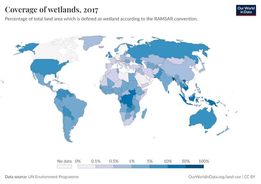 “Data Page: Coverage of wetlands”. Our World in Data (2026). Data adapted from UN Environment Programme. Retrieved from https://data-populationgrowth-discre.owid.pages.dev:8789/20260130-180113/grapher/coverage-of-wetlands.html [online resource] (archived on January 30, 2026).How to cite this data