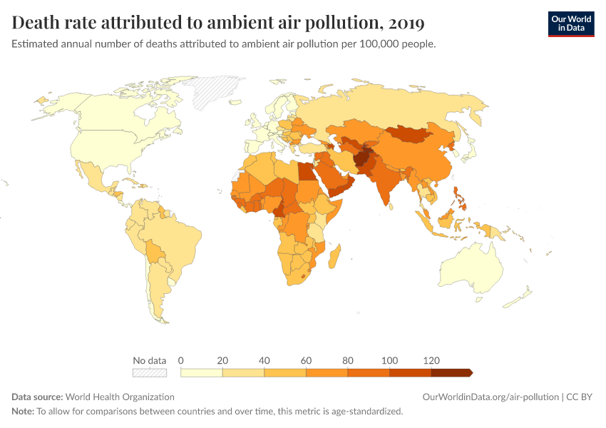“Data Page: Death rate attributed to ambient air pollution”. Our World in Data (2026). Data adapted from World Health Organization. Retrieved from https://data-populationgrowth-discre.owid.pages.dev:8789/20260130-180113/grapher/death-rate-ambient-air-pollution.html [online resource] (archived on January 30, 2026).How to cite this data
