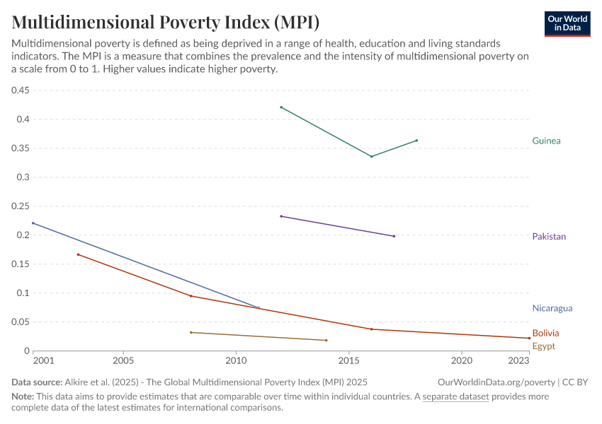Alkire et al. (2025) - The Global Multidimensional Poverty Index (MPI) 2025 – with minor processing by Our World in Data. “Multidimensional Poverty Index (MPI) – Harmonized over time” [dataset]. Alkire et al., “Global Multidimensional Poverty Index (MPI) 2025” [original data]. Retrieved February 27, 2026 from https://data-populationgrowth-discre.owid.pages.dev:8789/20251229-175603/grapher/multidimensional-poverty-index-mpi-hot.html (archived on December 29, 2025).