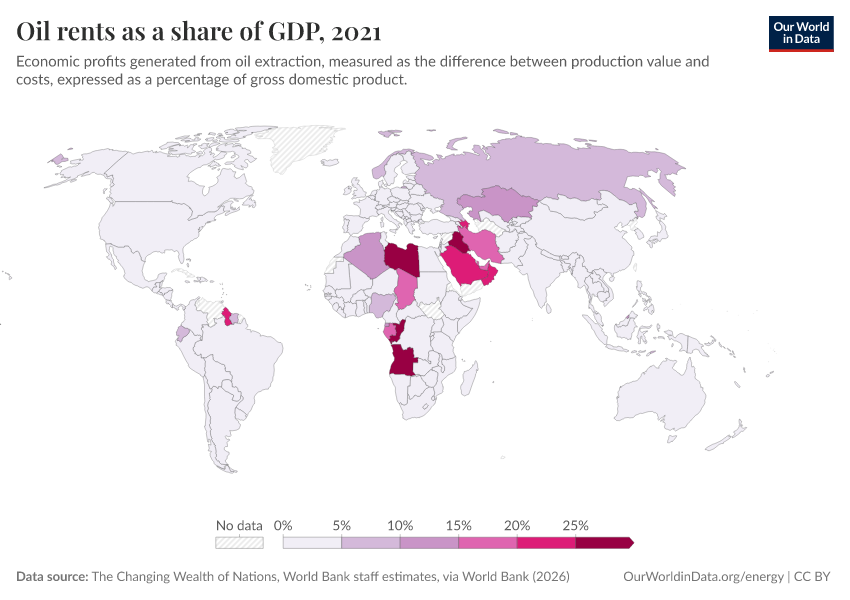 “Data Page: Oil rents as a share of GDP”. Our World in Data (2026). Data adapted from The Changing Wealth of Nations, World Bank staff estimates, via World Bank. Retrieved from https://data-populationgrowth-discre.owid.pages.dev:8789/20260202-181317/grapher/oil-rents-as-a-share-of-gdp.html [online resource] (archived on February 2, 2026).How to cite this data