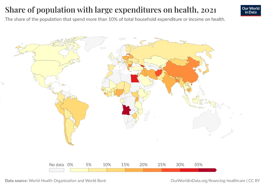 “Data Page: Share of population with large expenditures on health”. Our World in Data (2026). Data adapted from World Health Organisation and World Bank. Retrieved from https://data-populationgrowth-discre.owid.pages.dev:8789/20260130-180113/grapher/share-of-population-with-large-household-expenditures-on-health-10pc.html [online resource] (archived on January 30, 2026).How to cite this data