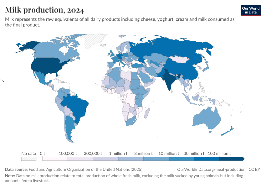 Milk production across the world