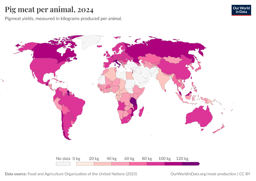 Since the early 1960s, global pigmeat production has also expanded significantly. China is the leading producer, contributing a substantial portion of the world's total pigmeat output. The growth in Chinese pigmeat production has been particularly rapid over the past couple of decades.