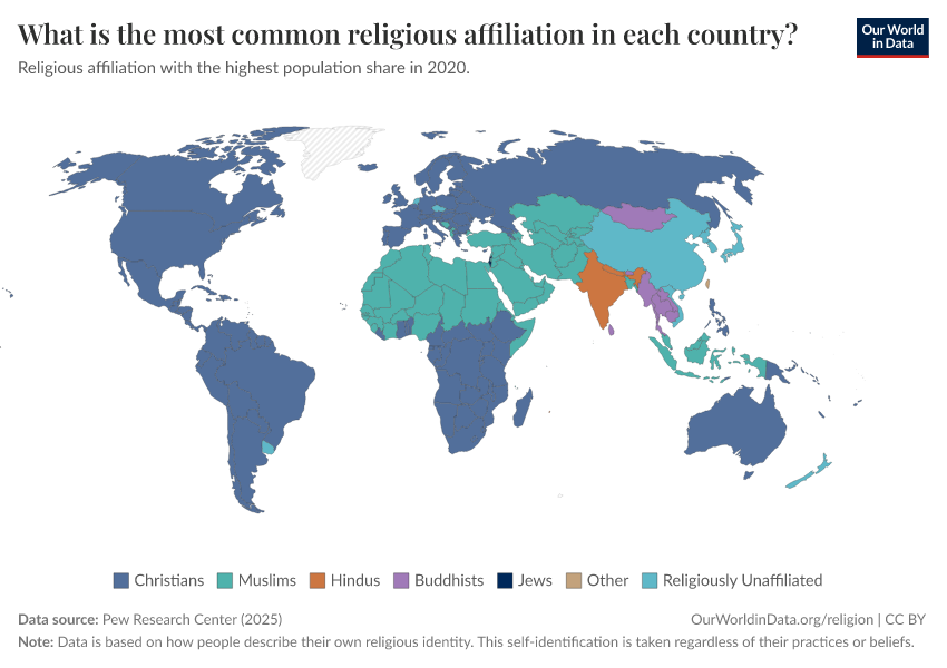 Hannah Ritchie, Lucas Rodés-Guirao, Pablo Arriagada, and Esteban Ortiz-Ospina (2026) - “Religion” Published online at OurWorldinData.org. Retrieved from: 'https://data-populationgrowth-discre.owid.pages.dev/religion' [Online Resource]BibTeX citation