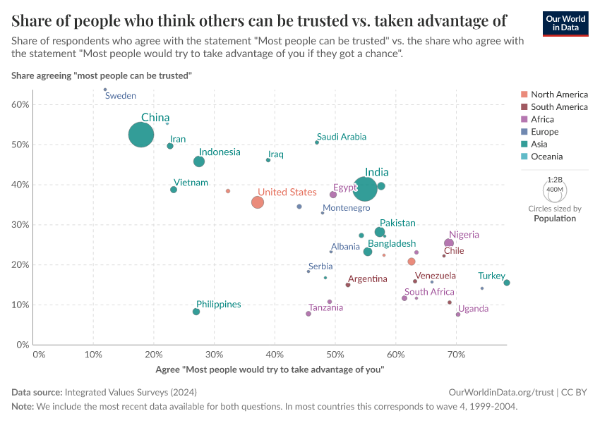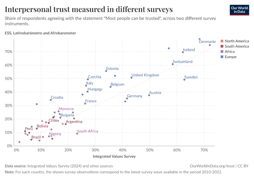 Esteban Ortiz-Ospina, Max Roser, and Pablo Arriagada (2016) - “Trust” Published online at OurWorldinData.org. Retrieved from: 'https://data-populationgrowth-discre.owid.pages.dev/trust' [Online Resource]BibTeX citation